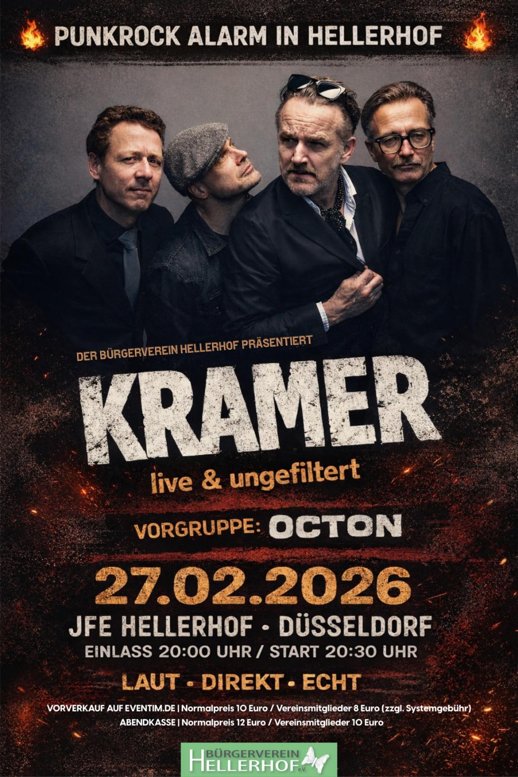 „Hellerhof rockt!“ – Wir freuen uns auf die Punkrockband KRAMER aus Düsseldorf und die Vorgruppe OCTON!